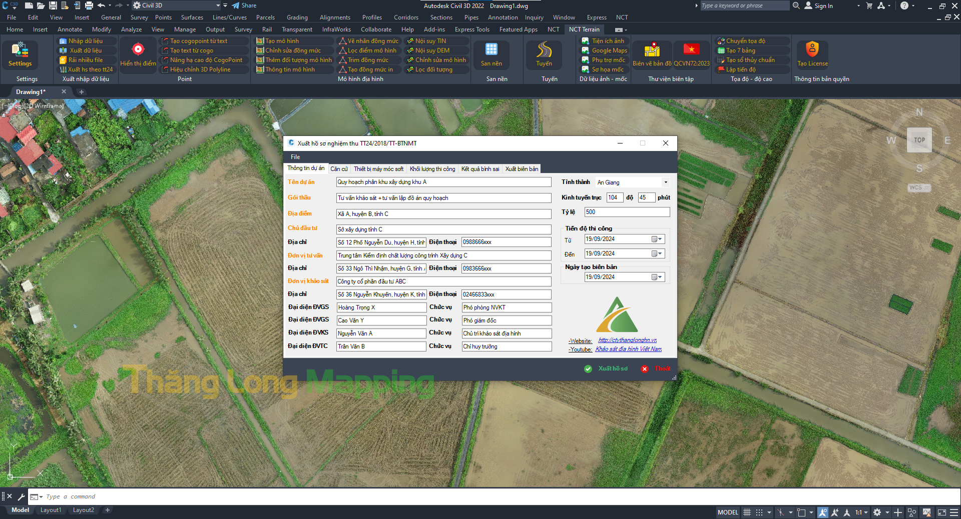 - Thăng Long Mapping hỗ trợ xuất các loại hồ sơ chuẩn theo TT24-2018 quy định về kiểm tra, thẩm định, nghiệm thu chất lượng sản phẩm đo đạc và bản đồ.
