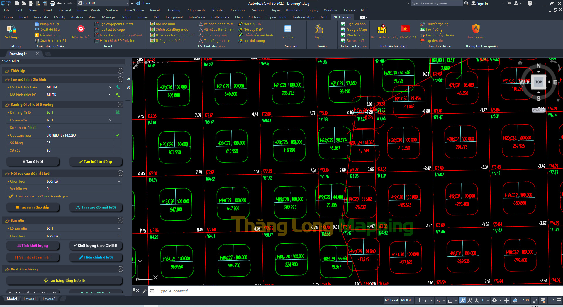 Phần mềm Thăng Long Mapping có thể tính toán khối lượng san nền song song theo 2 phương pháp chính là phương pháp lưới ô vuông và phương pháp so sánh bề mặt. Khi tính bằng 2 phương pháp này sẽ giúp người dùng đưa ra được đánh giá về độ chính xác của kết quả tính, tăng cường được độ chính xác cũng như kiểm tra được kết quả tính.