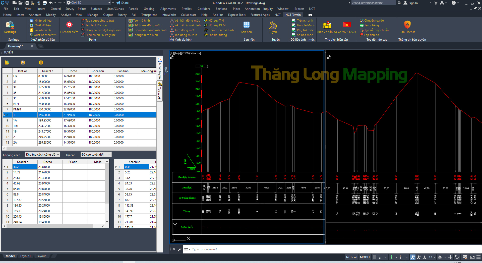 - Vẽ trắc dọc, trắc ngang từ số liệu tuyến hoặc số liệu từ file .ntd