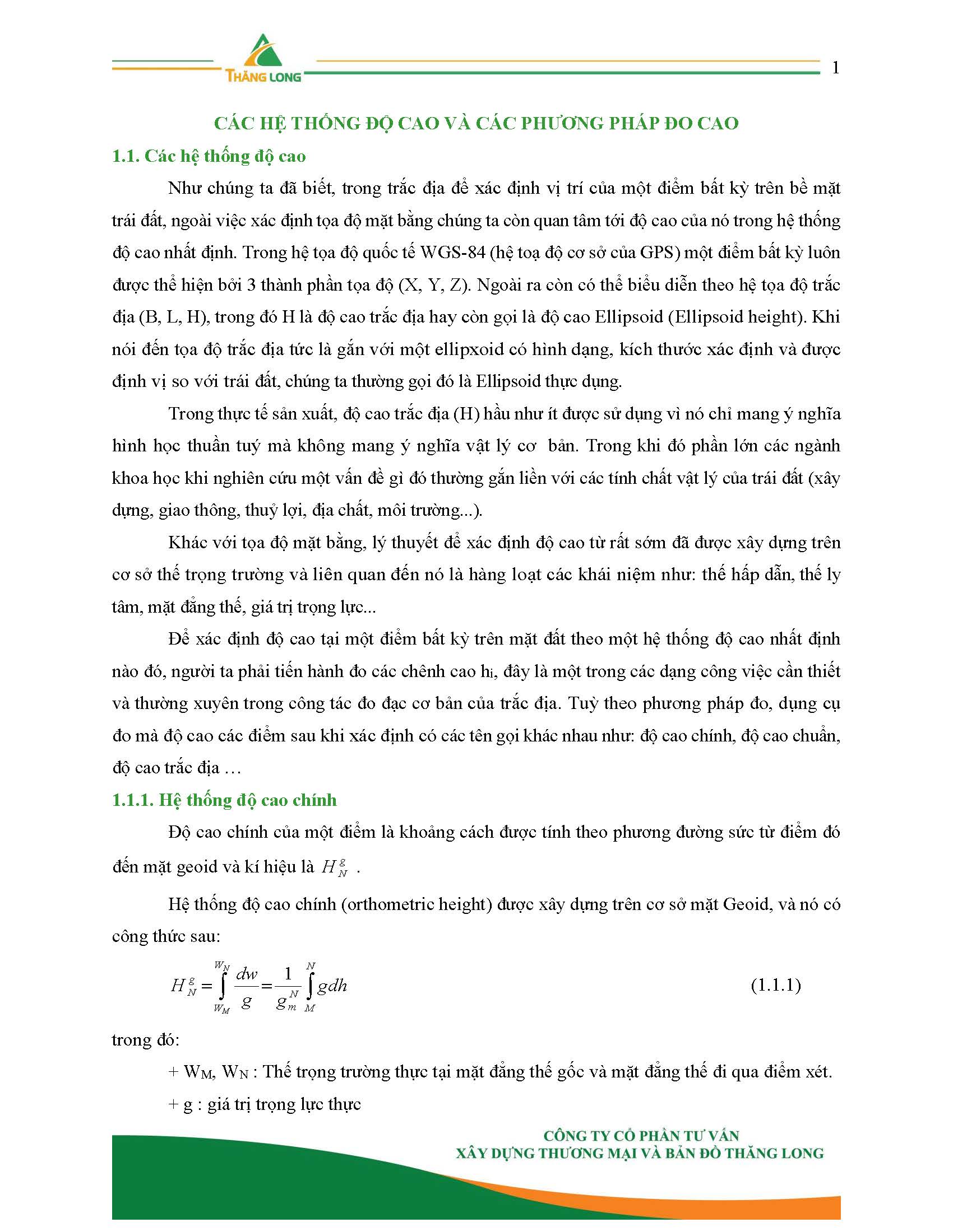 CÁC HỆ THỐNG ĐỘ CAO VÀ CÁC PHƯƠNG PHÁP ĐO CAO TRONG TRẮC ĐỊA