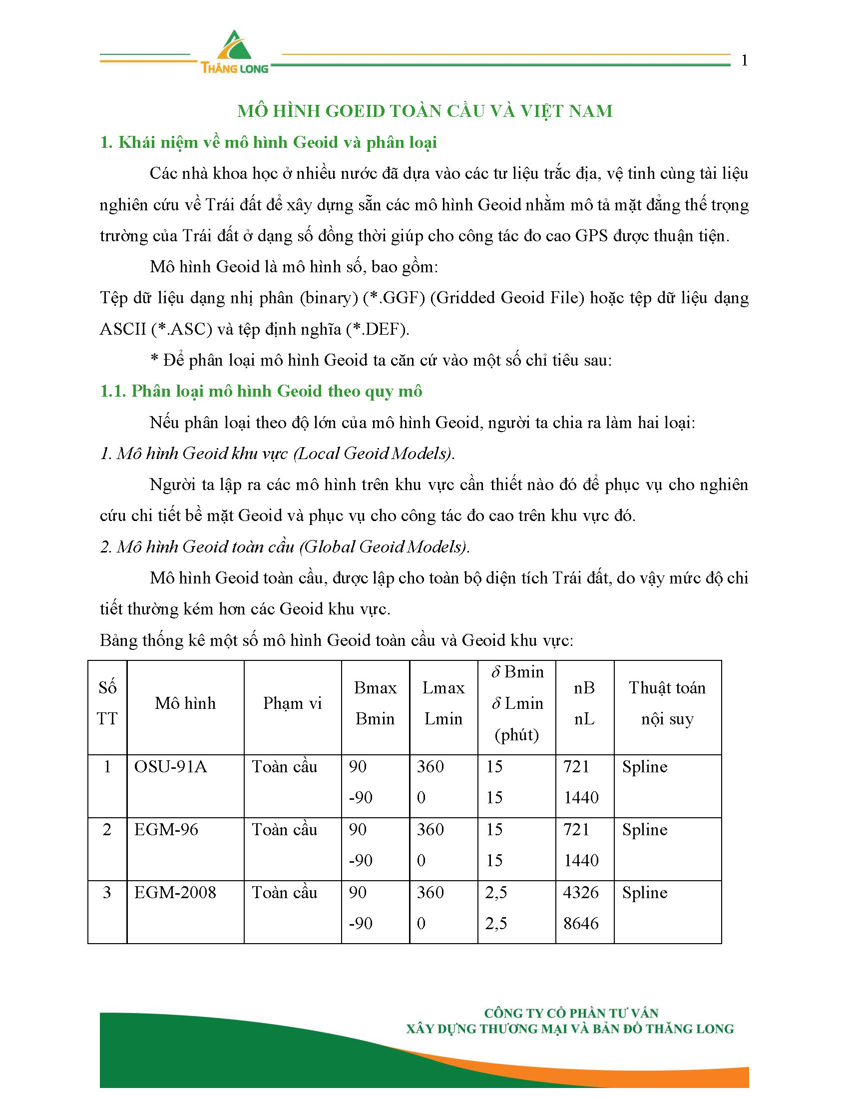 MÔ HÌNH GEOID TOÀN CẦU VÀ LÃNH THỔ VIỆT NAM